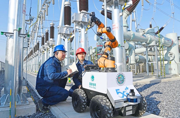 An inspection robot equipped with DeepSeek large model works at a transformer substation in Chuzhou, east China's Anhui province. (Photo/Song Weixing)