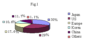 In recent years, the technology of mobile communication has been de veloping rapidly, and the amount of patent applications occupies a larger percentage of the patent applications in communication field in China. The number of patent applications in 2000 is not changed much, compared with that in 1999. Fig.1 shows the percentage of the patent applications submitted by some countries and regions in 1999-2000. Fig.2 shows the percentage of the patent applications submitted by some leading companies.